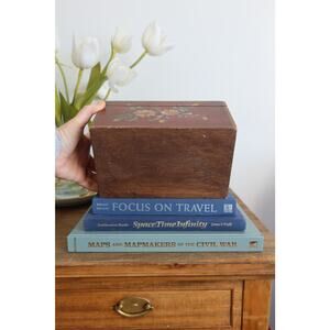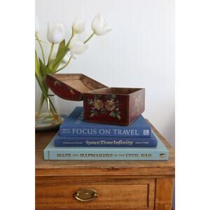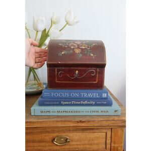 Vintage Hand Painted Wood Box Jewelry Folk Art Dresser Box Dome Lid Primitive