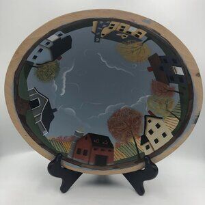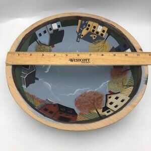 Vintage Hand Painted Wood Decorative Bowl Landscape Scenery Centerpiece