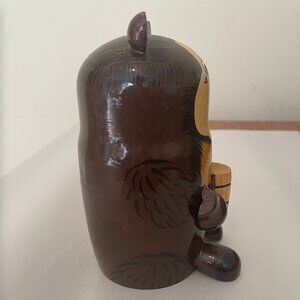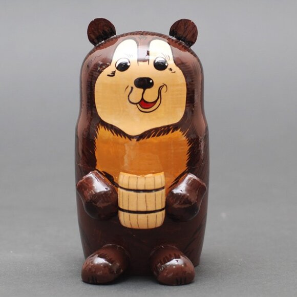 Vintage Hand Painted Wooden Bear Money Bank with Honey Barrel Coin Piggy Bank