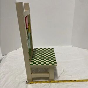 Vintage Hand Painted Wooden Doll Chair With Hand Carved Floral Cutout Design