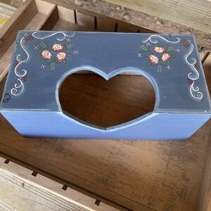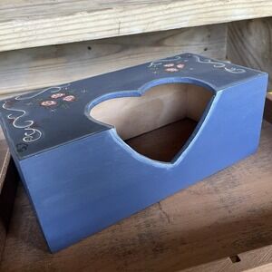 This vintage hand-painted wooden Kleenex holder features a whimsical floral design, perfect for adding a touch of retro charm to any bathroom. The square shape and blue color palette give it a unique and eye-catching look, while the hand-painted details add to its vintage appeal. Made from wood, this nostalgic piece is both functional and decorative, making it a lovely addition to any home looking to embrace a floral and garden theme.