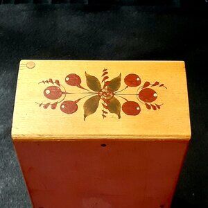 Vintage!! Hand Painted Wooden Trinket Box with Lid - Lid on with Wood Dowels.