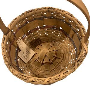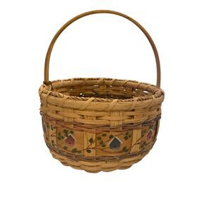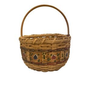 Vintage Hand Painted Woven Wood Slat Basket with Handle Cottagecore Farmhouse