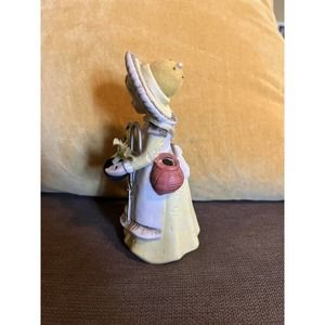 Vintage Hand Painted yellow Bisque Seamstress Caddy Pin Cushion hat Figurine