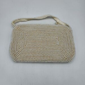 Vintage Hand Pearl Beaded White Clutch Purse Evening Purse Made In Japan