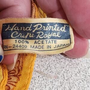 Vintage Hand Printed Crepe Royal Orange Yellow Floral Scarf 25X25 Lightweight