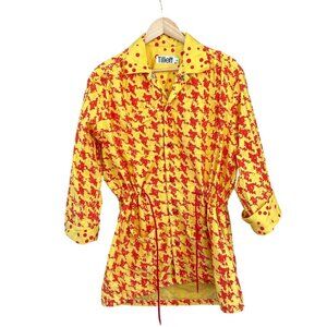 Vintage Hand Printed Tillett Women's Yellow Red Snap Up Jacket Medium 1980s