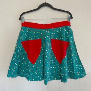 Vintage Hand Sewn Apron Turquoise w/Bright Red Pockets