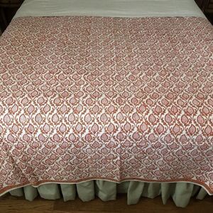 Vintage Hand Stitched Quilted Bed Cover ..... 85” Wide 100” Long. Condition is Excellent. Hand stitching throughout. Pattern is printed.