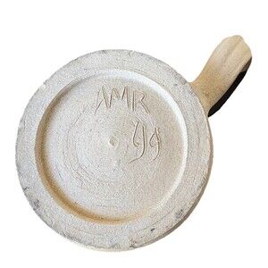 This vintage hand-thrown studio art pottery stoneware coffee mug features a beautiful blue glaze, adding a unique and artistic touch to your morning cup of coffee. Signed by the artist, this mug showcases the production style of art pottery, making it a one-of-a-kind piece for any collector or admirer of handmade craftsmanship. Enjoy your favorite hot beverage in style with this beautiful and functional piece of art.