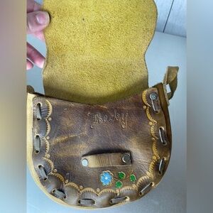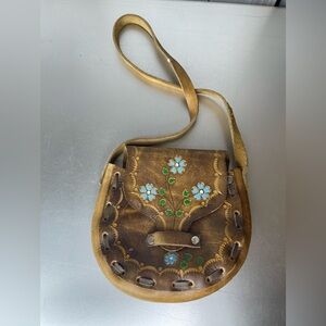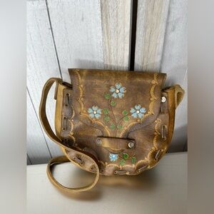 Vintage Hand Tooled Blue Flower Embossed Leather Small Bag Mexico