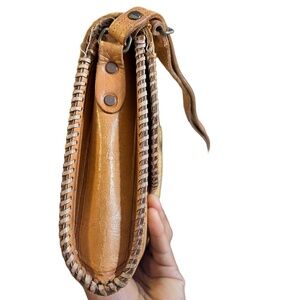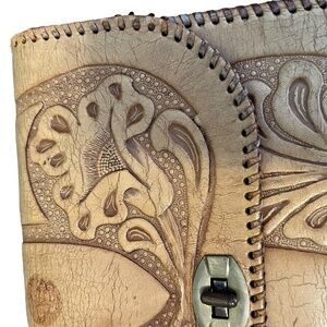 Vintage Hand Tooled Brown Leather Purse Adjustable Wide Strap Handbag