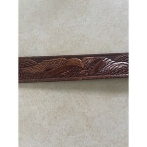Vintage Hand Tooled Buckle Belt 44 Handcrafted Western Top Grain Leather Brown