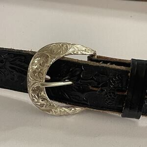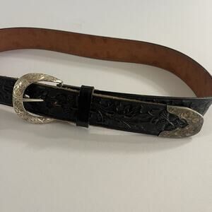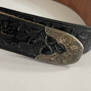 Vintage Hand Tooled Embossed Leather Belt