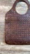 This tote bag showcases a rich chocolate brown color with an intricate basket-weave pattern, offering a unique textural element. Its structured design is complemented by a rounded top handle and reinforced leather trim, exuding a vintage charm.