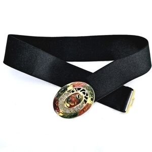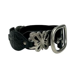 Vintage Hand Tooled Leather Belt Live Edge Wood Buckle Western Unisex Large 36