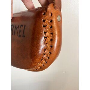 Vintage Hand Tooled Leather Brown S Boho Western Floral Crescent Medallion 70s
