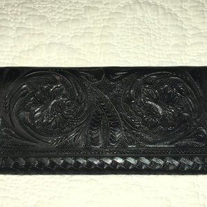 Vintage Hand Tooled Leather Clutch Wallet with Snap Clasp by Alejandro Yeo - New