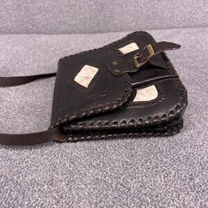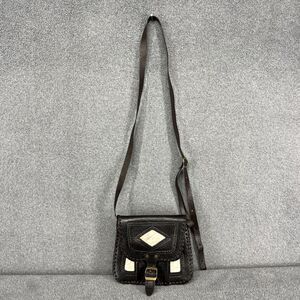 Vintage Hand Tooled Leather Crossbody Purse Womens Brown Hair-On Hide Western