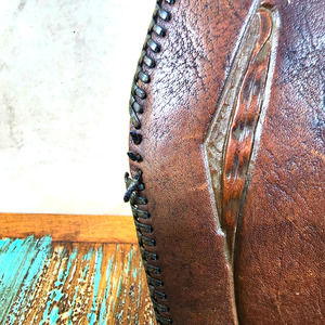 Vintage Hand Tooled Leather Purse Metal Clasp Early 1900s Art Nouveau Antique. Very unique - own this special purse from times past. There is some fraying on the edges of the purse and handle. Clasp works by twisting and pulling back to open purse. Measurements are in the pictures. Nice condition for its age.