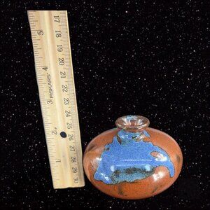 Vintage Hand Trown Art Pottery Bud Vase Signed Hand Made Ceramic Blue Red Drip