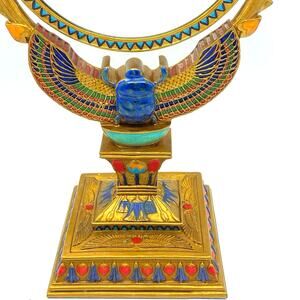 Vintage Hand painted Gold,Red,Blue Scarab Beetle Double Sided Standing Mirror
