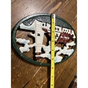 This vintage hand-painted iron trivet features a charming lighthouse design, perfect for adding a touch of seaside charm to any kitchen or home decor. Made from durable iron, this trivet is both functional and stylish, adding a unique accent to your cooking space. Ideal for collectors or those who appreciate beachcore aesthetics, this trivet is a functional piece that also serves as a decorative item for your kitchen.
