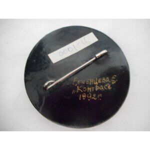 Vintage Hand painted Signed Russian Floral Lacquer Pin Brooch