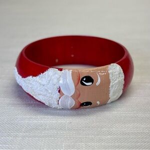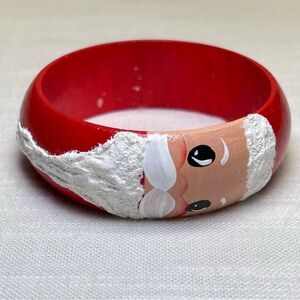 Vintage Hand painted Textured Santa Claus Christmas Wooden Bangle bracelet wood