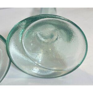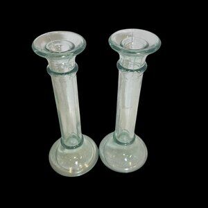 Vintage Hand-Blown Clear Green Glass Taper Candle Holders 7" Tall Set Of 2