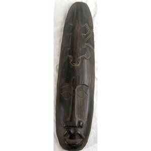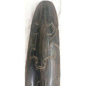 This wooden mask showcases intricate craftsmanship with its hand-carved tribal design. The lizard motif adds cultural depth, making it a striking decor piece.