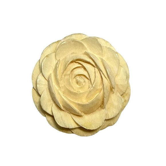 Vintage Hand-Carved Bone Rose Brooch Pin With Metal Clasp