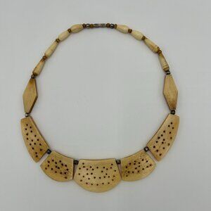 Vintage Hand-Carved Necklace With Geometric & Floral Patterns