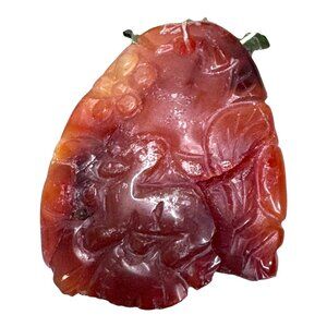 Vintage Hand-Carved Red Carnelian Agate Necklace Floral Lion Green Jade Accents