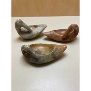 Vintage Hand-Carved Soapstone Duck Figurines Set Of 3
