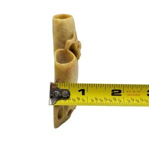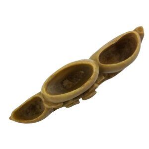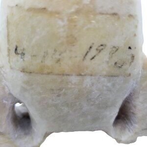 Some minor surface wear and natural soapstone variations. Approximately 3 inches tall, 6 inches wide.