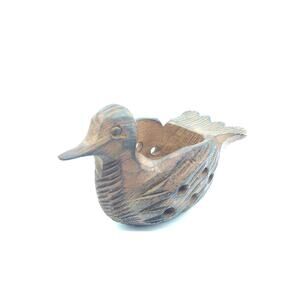 Vintage Hand-Carved Wood Duck Bird Candle & Incense Holder Edward Rodriguez Co.