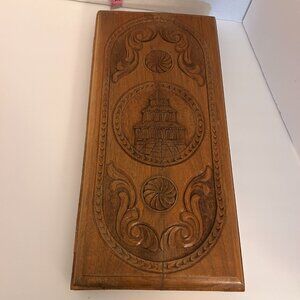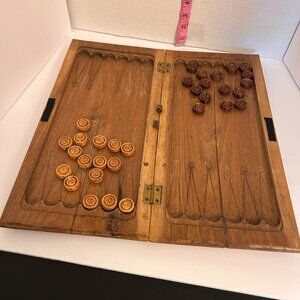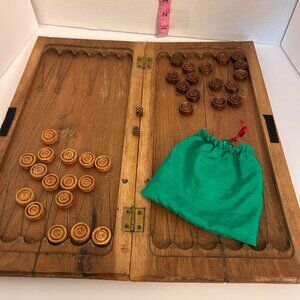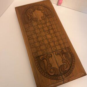 Vintage Hand-Carved Wooden Chess & Backgammon Board w/