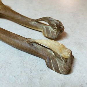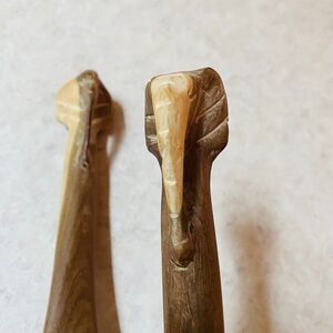 Vintage Hand-Carved Wooden Elephant Salad Spoon and Fork Serving Set.