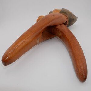 This vintage nutcracker, with its charming hand-carved wooden design, features an intricately detailed mustache and hair that capture attention. Its distinct craftsmanship demonstrates the artistry involved in wood carving, making it not only functional but also an engaging decorative piece. The nutcracker serves both as a practical tool and a conversation starter, embodying a blend of utility and charm.