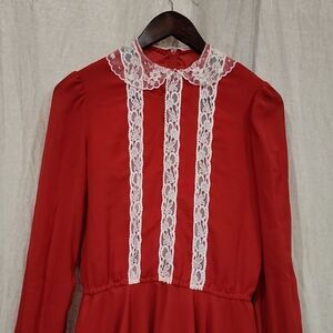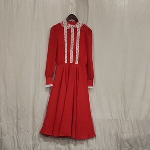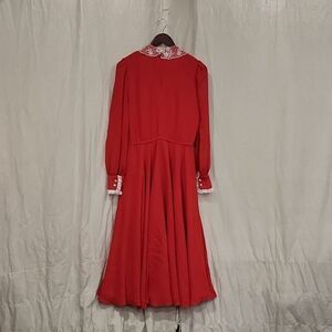 Vintage Hand Crafted Hikiday Christmas Dress . the white lace is see through in front.