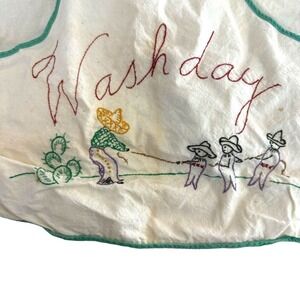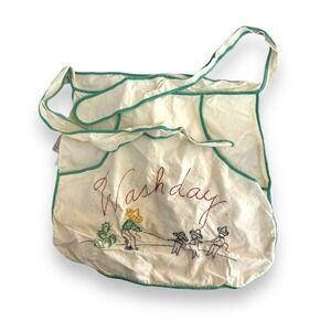Vintage Hand-Crafted Needlepoint Embroidered "Washday" Apron Kitchen Utensils