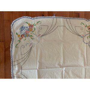 Vintage Hand-Embroidered Floral Tablecloth 39"x40"