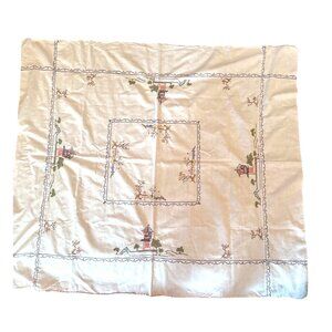 Vintage Hand-Embroidered Tablecloth With Scenic Design