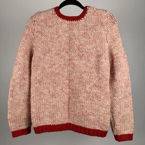 Vintage Hand-Knit Chunky Wool Pullover Pink Red Sweater | PRYM Buttons