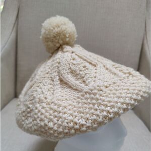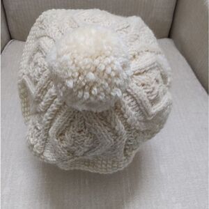 Vintage Hand Knit New Wool Irish Tam Beret Hat with a Pom Pom. Lovely classic Irish Aran Pattern hand knit in Ireland. 100% pure wool.