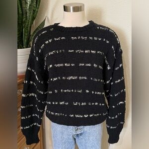 Vintage Hand-Knit Sweater Black & White Textured Pullover neutral