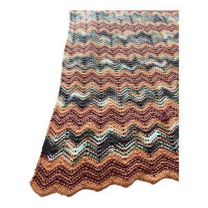 Vintage Hand-Knitted Chevron Blanket – 40 x 69 – Retro Zigzag Throw in Warm Earth Tones