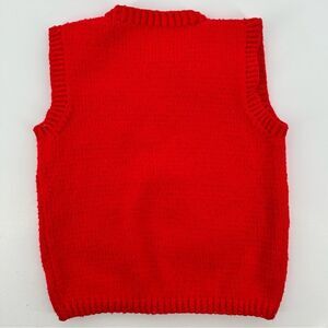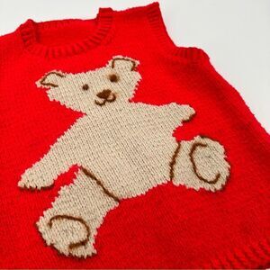Vintage Hand Knitted Sweater Vest Teddybear Red Kids Size 4/5