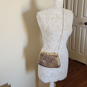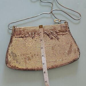 This beautiful little vintage bag is lined in beautiful satin, and it is padded to lend integrity to the shape of the bag. Very mild patina, as to be expected with a vintage bag. Looks like a Whiting & Davis bag, but no tag to indicate that. C1UP.8221